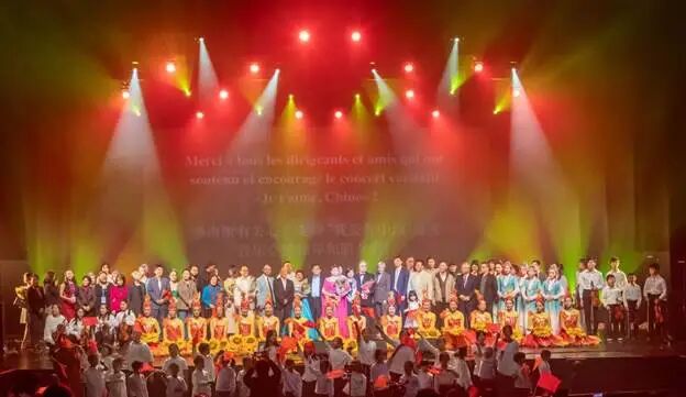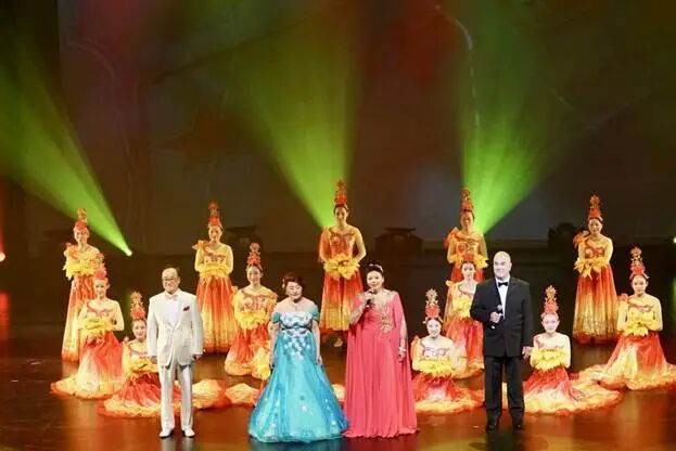 压轴曲目《我爱你中国》,黄显淑、许倩、刘建军和Mario Simard携手登台,Elsa舞蹈学校、枝枝舞蹈队、徐智小提琴教学研究室及TAC三佳国际教育学院共同参与表演。
