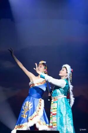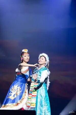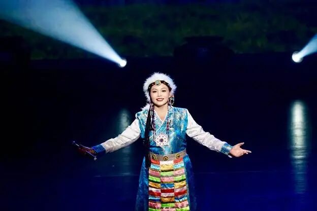 这部分的高潮,是显淑的招牌曲《青藏高原》。伴随林乐怡的舞蹈,舞台灯光从蓝到白,仿佛雪域高原的天空映入剧场。一袭藏族衣裙的她似从雪山走来,清澈高亢的嗓音,带有苍茫与辽阔之美,将观众的思绪带上高原,感受生命与自然的宏大交响。这首曾在25年前中加建交30周年演出中令观众震撼的作品,如今再次回归,显淑将高原辽阔、自然雄浑与人文情感完美融合,感动无数观众。