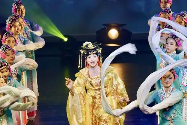 “梨花开,春带雨;梨花落,春如泥······”,一袭唐装扮相的显淑,金钗步摇轻移,这样的舞台形象华贵、典雅。