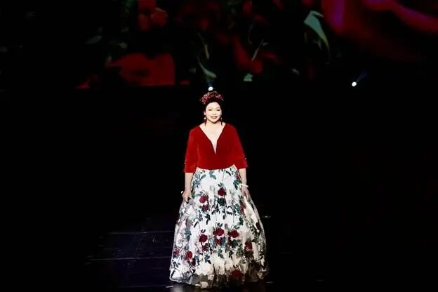 显淑回到舞台,以法语演绎经典浪漫之作《La Vie en Rose》。她一袭法式图案的美丽衣裙,点缀着若隐若现的玫瑰,极其贴合歌曲的法兰西浪漫之咏。经典旋律中,她细腻的情感处理与优美的法语发音让观众如沐春风。旋律中,观众眼神柔和,心情轻盈,仿佛置身巴黎街头,漫步于花香与光影之间。