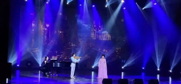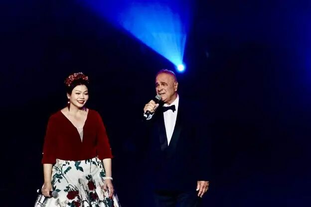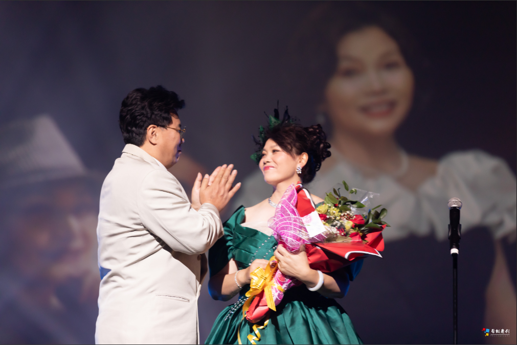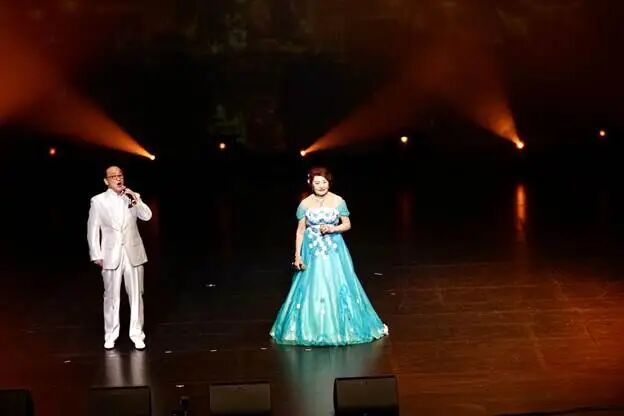 紧接着,显淑与她的老师魁北克男高音歌唱家Mario Simard合作演绎《月亮代表我的心》,两人的对唱如涓涓细流汇入观众心间,传递跨文化的情感共鸣。两人的声线交织,甜美而深情。Mario的低沉与显淑的清亮形成绝妙的对比,台下观众随着旋律轻轻合唱,掌声如潮,爱意在剧场内漫溢。