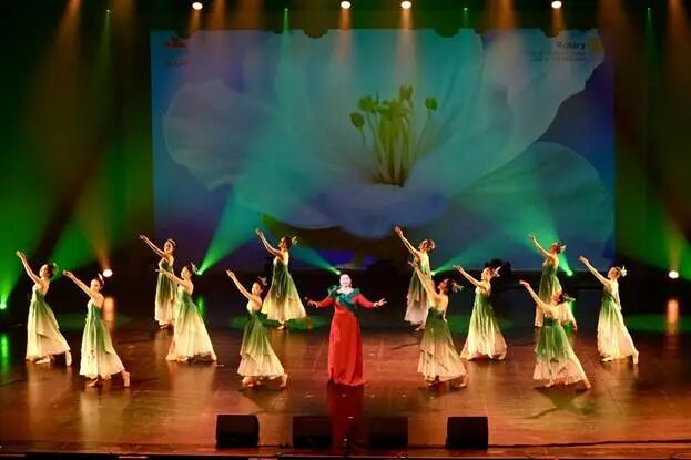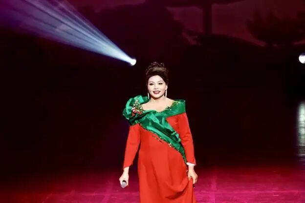 音乐会在中西观众皆耳熟能详、富有东方韵味的《好一朵美丽的茉莉花》的旋律中开始,黄显淑缓步登台,身着一袭精心设计的点缀绿色肩袖的红色礼服,步入舞台中央。伴随着Elsa舞蹈学校舞者们轻盈的舞步,洁白的茉莉在舞台灯光下摇曳生姿。她的目光穿过观众席,温暖而明亮,像家乡的月光落在沱江之上。全场的掌声如涌动的江水,烘托着温柔而坚定的旋律。舞者旋转的裙摆、柔美的舞台灯光与显淑的歌声相映成趣,化作茉莉淡雅的花瓣,轻轻落入每个人的心里,呈现出中华文化的精致与纯美。