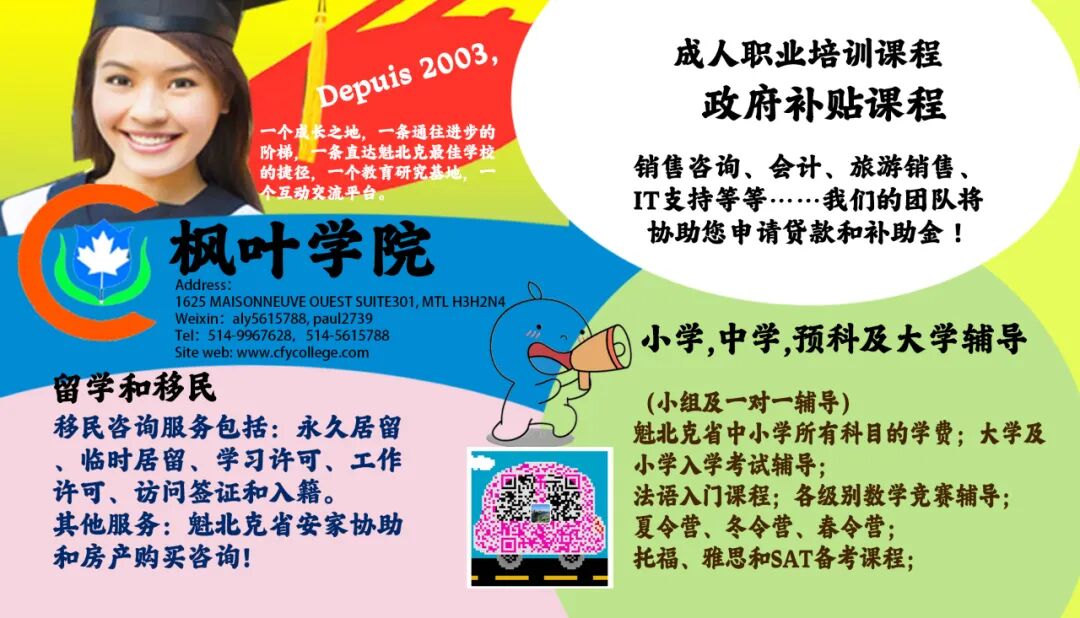 联系电话:514 660 2628