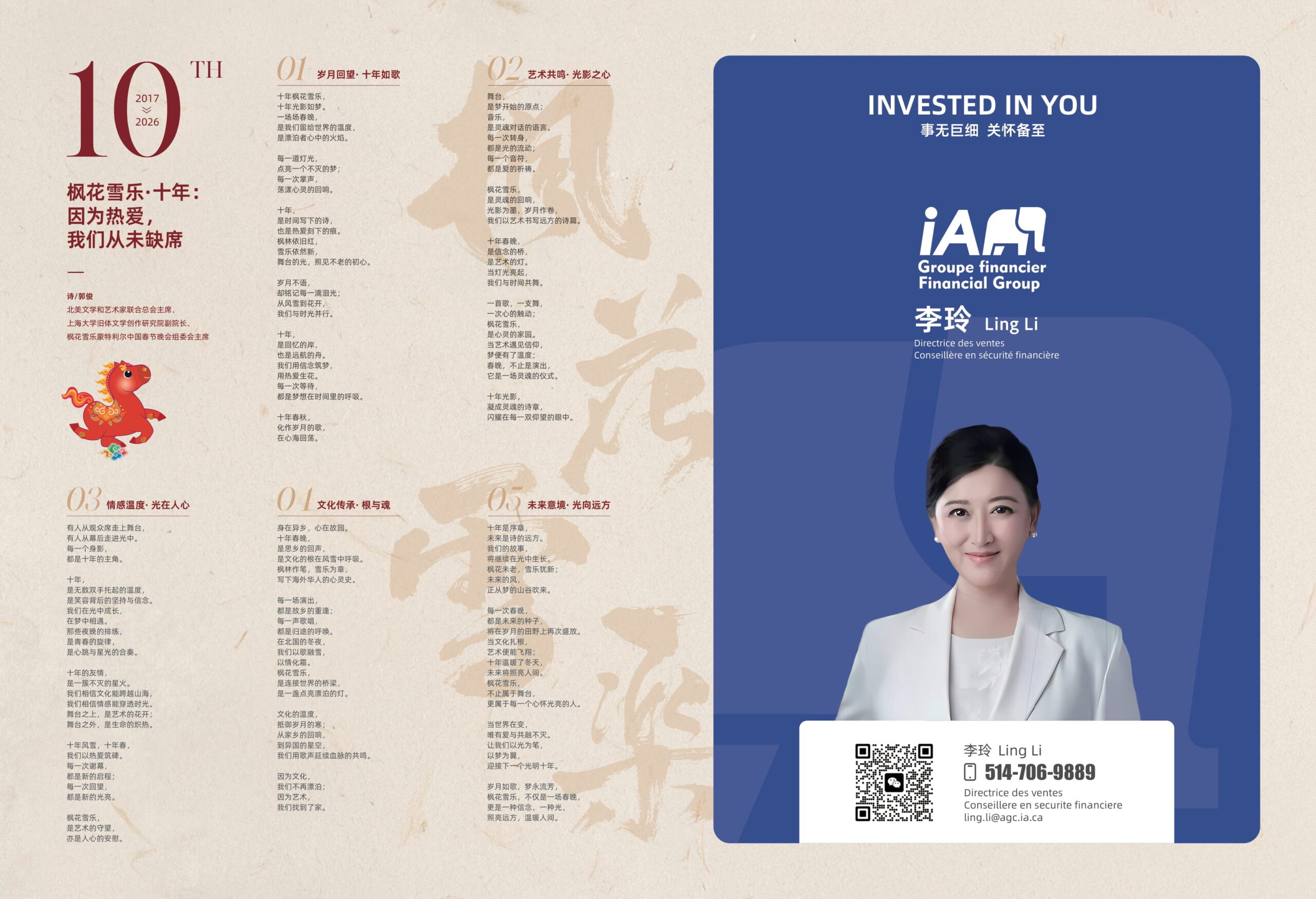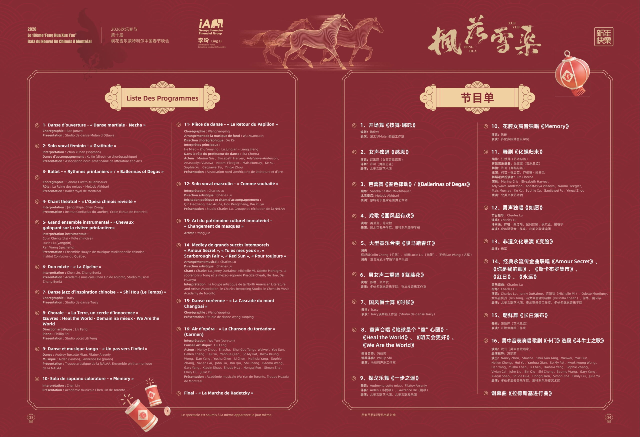 Home枫花雪乐蒙特利尔中国春节晚会Le 10ème“Feng Hua Xue Yue”Gala du Nouvel An Chinois À Montréal 2026欢乐春节第十届枫花雪乐蒙特利尔中国春节晚会 枫花雪乐蒙特利尔中国春节晚会 Le 10ème“Feng Hua Xue Yue”Gala du Nouvel An Chinois À Montréal 2026欢乐春节第十届枫花雪乐蒙特利尔中国春节晚会 By myNalitartsAdmin January 10, 2026 0 215 Share FacebookTwitterPinterestWhatsApp 查看高清版节目清单 Share FacebookTwitterPinterestWhatsApp Previous articleLe 10ème“Feng Hua Xue Yue”Gala du Nouvel An Chinois À Montréal 2026欢乐春节第十届枫花雪乐蒙特利尔中国春节晚会 myNalitartsAdminhttps://nalitarts.com RELATED ARTICLES 枫花雪乐蒙特利尔中国春节晚会 Le 10ème“Feng Hua Xue Yue”Gala du Nouvel An Chinois À Montréal 2026欢乐春节第十届枫花雪乐蒙特利尔中国春节晚会 January 9, 2026 枫花雪乐蒙特利尔中国春节晚会 【北美文化传媒】1.11 感受文化血脉的悸动,枫花雪乐,我们心灵的加油站!醉美的夜,我们在一起! January 5, 2026 枫花雪乐蒙特利尔中国春节晚会 【北美文化传媒】坚守好品质!打磨审美,你的品味,我们的追求,枫花雪乐十年芳华! December 7, 2025 Most Popular Le 10ème“Feng Hua Xue Yue”Gala du Nouvel An Chinois À Montréal 2026欢乐春节第十届枫花雪乐蒙特利尔中国春节晚会 January 9, 2026 【北美文化传媒】1.11 感受文化血脉的悸动,枫花雪乐,我们心灵的加油站!醉美的夜,我们在一起! January 5, 2026 《没有走散的跨年》 January 3, 2026 《2026的乐章依旧华丽》 January 3, 2026 凝心聚力谋发展 携手同行启新程 December 23, 2025 “同心援港”爱心演唱会圆满举行,多伦多侨胞筹款逾2.7万加元温情驰援香港 December 11, 2025 【北美文化传媒】坚守好品质!打磨审美,你的品味,我们的追求,枫花雪乐十年芳华! December 7, 2025 央视网丨2025中国人工智能大会暨全国人工智能学院院长(系主任)年会在京开幕 December 2, 2025 细雨悄润物,轻风暗传香 ——小议中加民间友好活动的作用与意义 November 25, 2025 【北美文化传媒】华人最爱的国货高端厨电,加拿大黑五提前开抢!方太年度最低价,多买多赠,叠加优惠最高省20%!错过再等一年! November 20, 2025 Load more